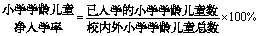 小学学龄儿童净入学率 指调查范围内已入小学学习的学龄儿童占校内外学龄儿童总数(包括弱智儿童,不包括盲聋哑儿童)的比重。计算公式为: